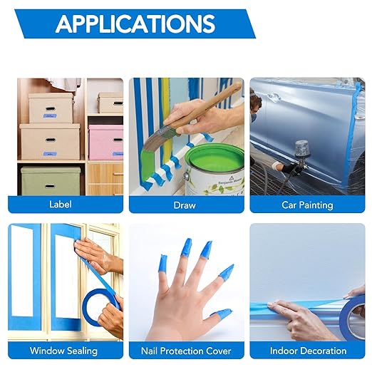 - Multi-Purpose:Blue painters tape is very suitable for Artist to DIY crafts and arts, painting, home decorations, wall art, greeting cards, labeling, drafting, car maintenance, etc. Those masking tape can be used on various surfaces, such as flat, smooth or slightly textured walls, glass, metal, wood, baseboards, ceramic tiles, hardwood floors, trim, plastic, etc.