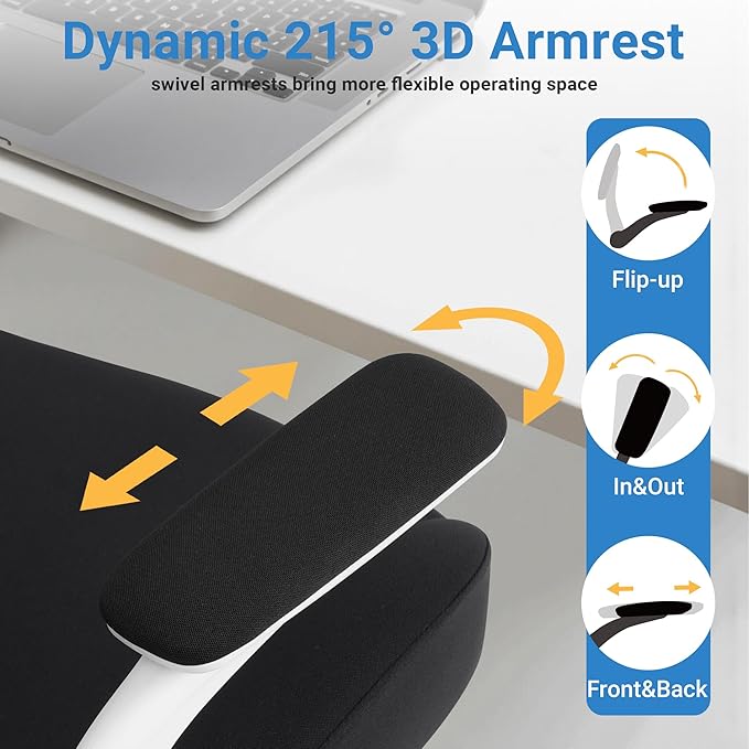 HYLONE Heavy Duty Office Chair, 5" Thickened Seat Ergonomic Desk Chair with Adjustable Armrests, Home Office Computer Chairs for Long Hours Mesh Executive Chair(White Base & Black)