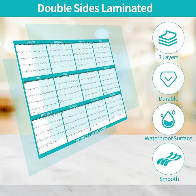 - Wall Calendar Dry Erase: Yearly large wall calendar 2026 covers 12 months from January 2026 to December 2026 for year-round planning. Wall calendar 2026 akes all important events, birthdays, appointments clearly visible on one page.