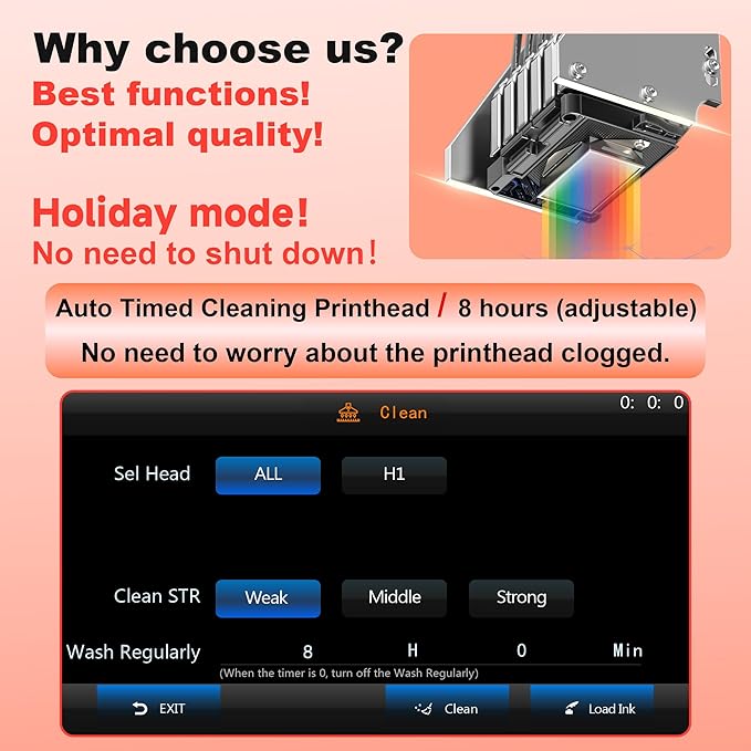 - ❤️ innovative anti-blocking technology, say goodbye to printing troubles: Equipped with 3-in-1 white ink cycle, mixing, filtration system and automatic cleaning and moisturizing device, to ensure that the nozzle is permanent and smooth, to avoid blockage and affect the work.