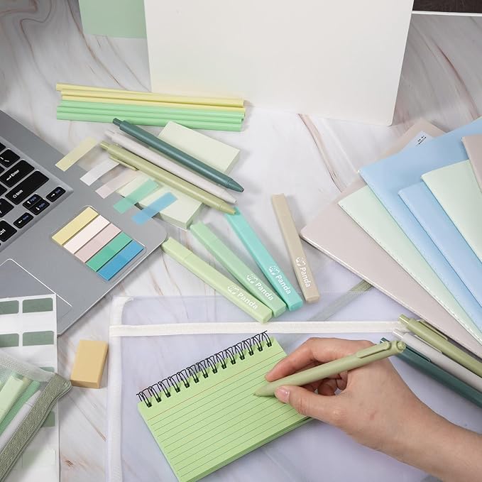 Colarr 54 Pieces Aesthetic School Supplies Including Pastel Highlighters Document Bags Pencils Notebooks Pencil Pouch Ink Pens Sticky Notes Erasers Back to School Gift Stationary Kit(Green)