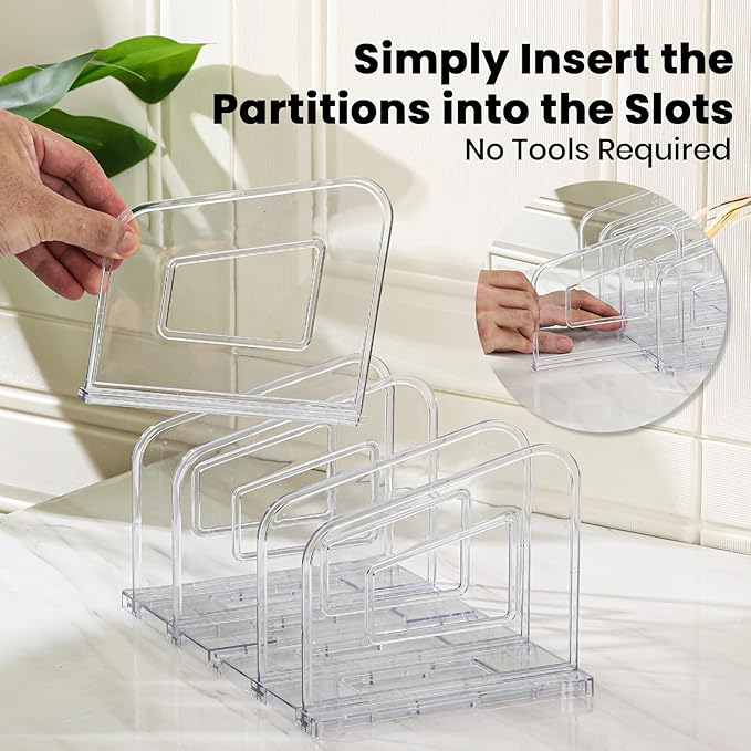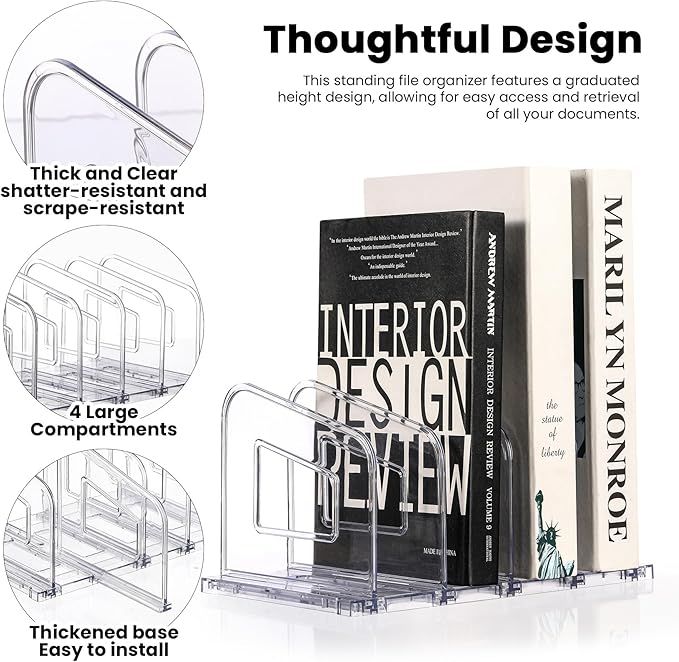 File Organizer, Acrylic File Folder Organizer File Sorter, Plastic Vertical Book Dividers for Magazine Mail Letter Paper, Desktop Organizers for Office, Classroom & Home(4 Sections, 2 Pack)