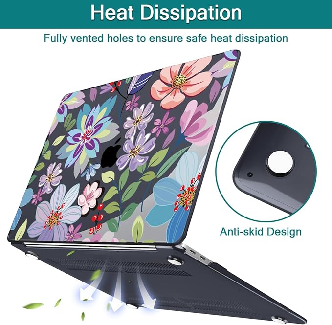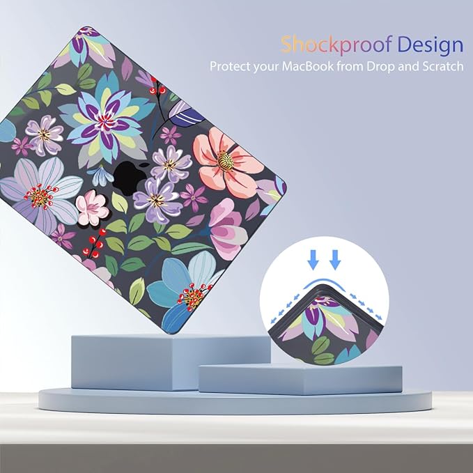 Teryeefi for MacBook Pro 13 inch Case M2 M1 2025 2022 2021-2016 Release fits Model A2338 /A2289/A2251/A2159/A1989/A1706 with Touch Bar, PC Hard Shell with Keyboard Cover, Pretty Colorful Flowers A004
