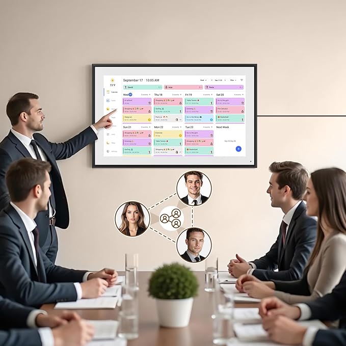 - 🎁Perfect Gift:Perfect gift for Father's Day, Mother's Day,Valentine's Day, Thanksgiving, Christmas, Wedding, Birthday and so on. It has multi-functions, such as photos/videos, sleep mode, adjustable brightness. Customize your digital wall calendar touch screen with colors and unique tag names.Share your calendar with friends, family, or colleagues and coordinate plans effortlessly. Can view and edit the calendar the same time, Support permission classification, Assign tasks to multiple person and track project progress.