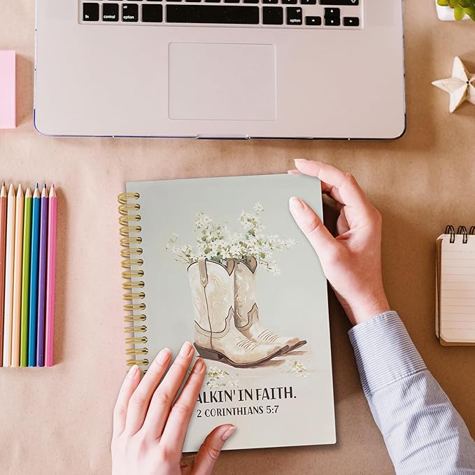 Western Christian Spiral Notebook, Western Cowgirl Bible Journaling Notebooks for Note Taking, Floral Scripture Hardcover Journals for Women 160 Pages 5.5x8.3 Inch, Cowgirl Gifts for Women