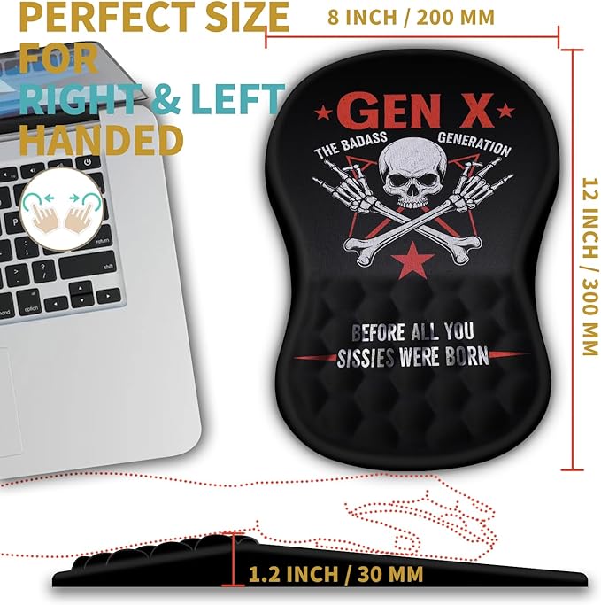 Hokafenle Ergonomic Mouse Pad Wrist Support with Massage Design, Wrist Rest Pain Relief Mousepad with Memory Foam&Non-Slip PU Base, Mouse Pads for Wireless Mouse & Desk (12x8 inch,Gen X)