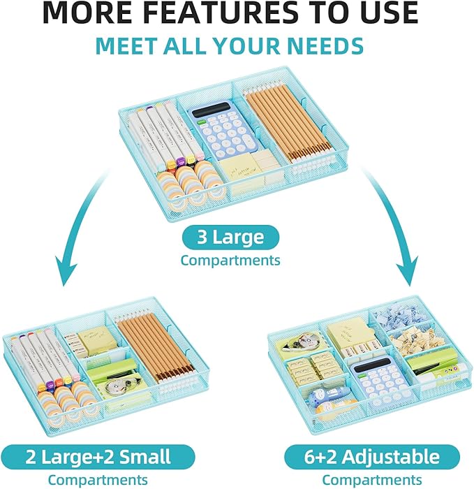 - Sturdy and Durable: Made of strong wire mesh with a powder-coated finish that is smooth, corrosion-resistant, and built to last. Non-slip feet keep the organizer stable and in place.This practical desk drawer organizer also makes a perfect gift for your family and friends.