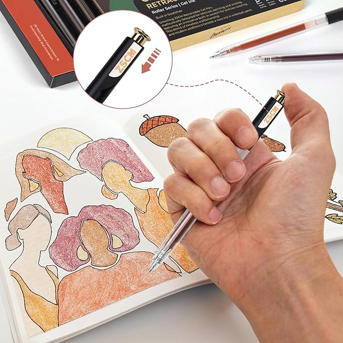 - Perfect Gift & Portable Storage:This 12-piece retractable glitter gel pen set comes in a deluxe drawer-style box with molded tray to securely hold each glitter pen. Perfectly packaged for gifting to artists, crafters, and stationery enthusiasts. The anti-slip tray keeps pens organized whether at home, office, or on-the-go - ready to spark creativity anytime!