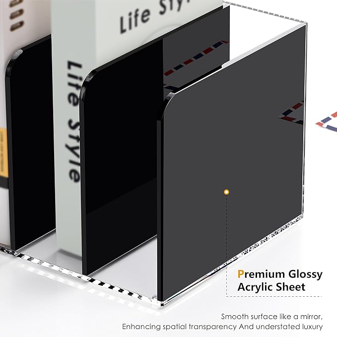 - 【BLACK CLEAR TWO-COLOR ACRYLIC FILE FOLDER】 : Black glossy, low-key luxury with no fear of themes, use s desktop file shelf on your desk to store all your important documents, documents and documents, while still blending in with any decor to stay stylish! The open design can also store larger types of files!