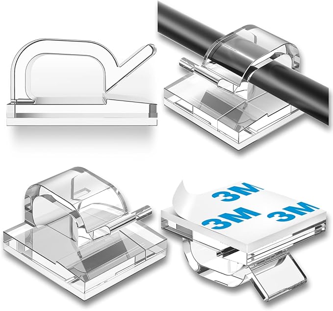 - Self-Adhesive Clips: Sticky cable holder clip with self adhesive pad can grip the surfaces stably which can be removed easily without damage to the desktop and with no residue leaving on the surfaces.