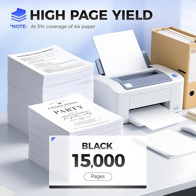 - High Page Yield: Up to 15,000 pages per 58D1H00 Black Toner Cartridge,(at 5% coverage of A4 Paper),High Yield Version 58D1H00 Toner Cartridge.
