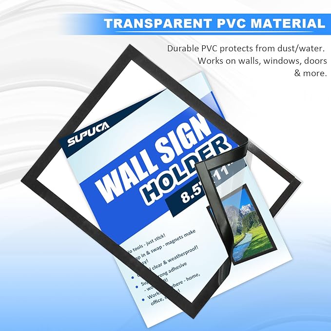 - Magnetic Display Frame: This 8.5x11" magnetic sign holder features a durable PVC front with strong magnetic frame borders, allowing quickly insert and replace it while the self-adhesive backing grips smooth walls, glass, or metal surfaces securely without falling off