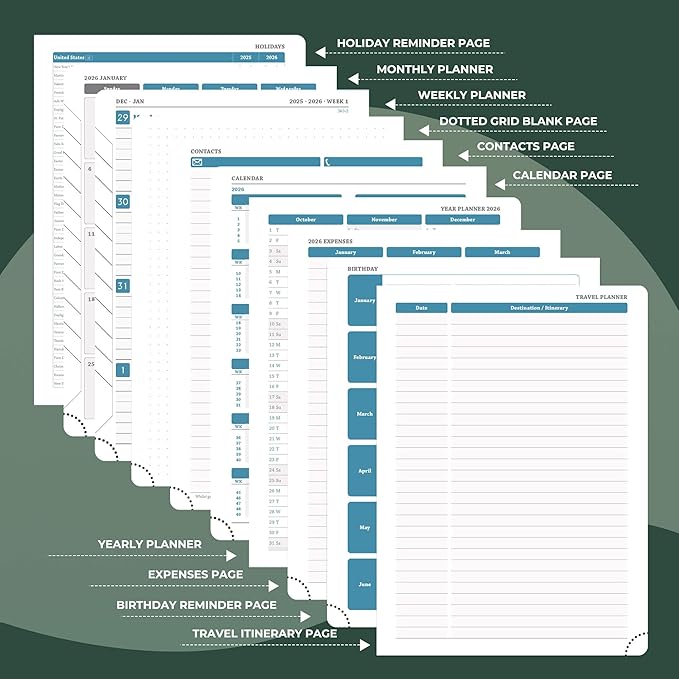 - Professional Grade Material for Your Daily Planner: Crafted with FSC 100GSM thick paper, this 2026 planner ensures good writing with markers while gentle on your eyes through its ivory white pages. The leather soft cover and lay flat binding make it a calendar planner companion for busy professionals, students, and families