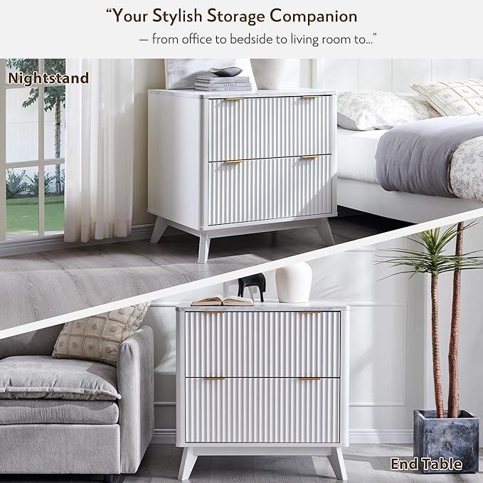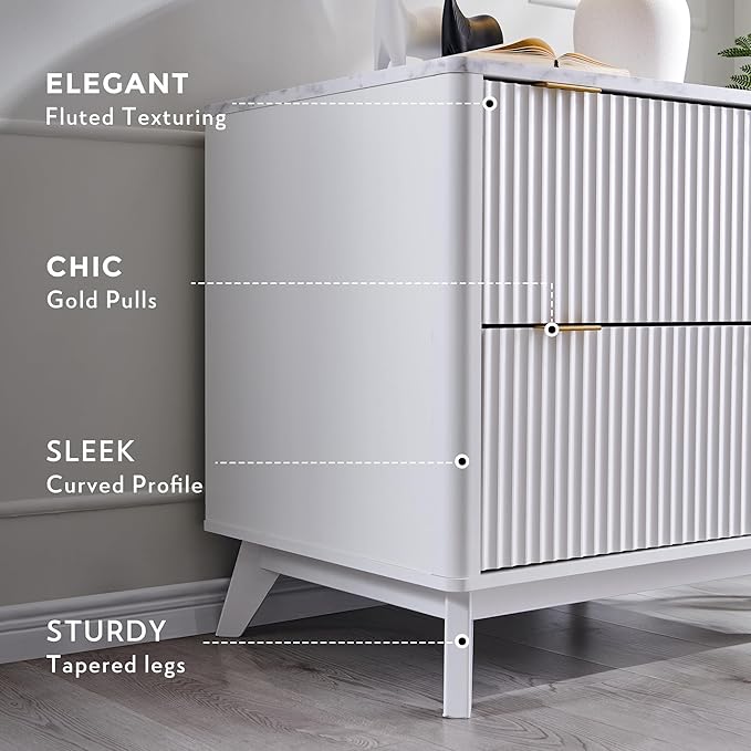 - Sleek & Modern Fluted Design: Elevate your workspace with our contemporary lateral file cabinet, featuring a sleek fluted design that adds striking depth and tactile sophistication. The rich woodgrain texture pairs seamlessly with chic metal handles, creating a perfect blend of modern elegance and functional durability. Its gently curved profile ensures a soft aesthetic, while the tapered legs provide exceptional weight distribution and rock-solid stability.