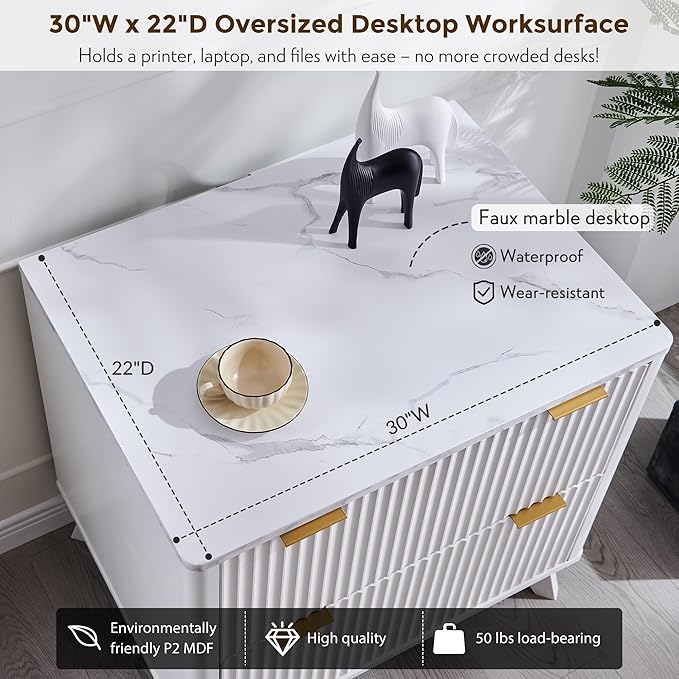 - "30"W x 22"D Extra-Large Desktop - Strong Enough for Printers & More!": Need space for your printer, monitor, or office essentials? Our file cabinet's roomy desktop gives you plenty of working space. The super-strong 50lb capacity means you can safely place heavy equipment without worry - no shaking or bending! Perfect for creating an efficient workspace. Work smarter with this space-saving solution that combines generous surface area with dependable strength.