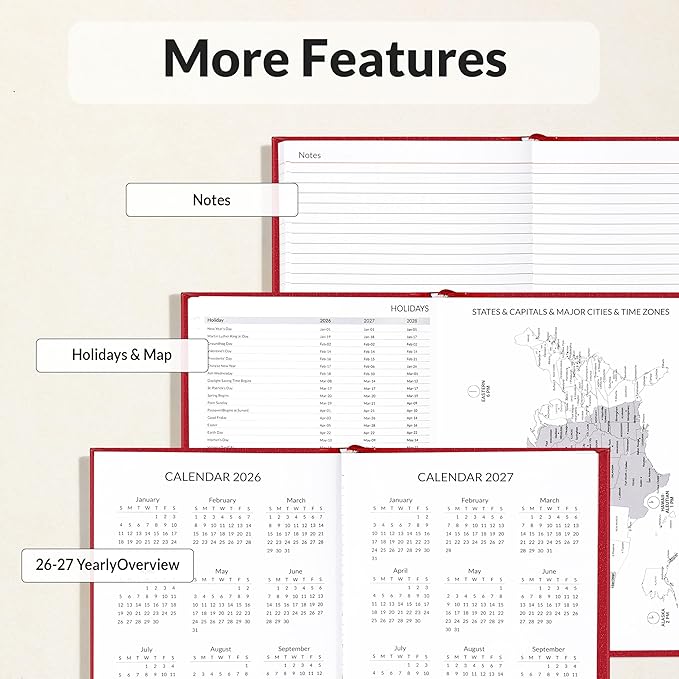 - Complete with Extras: Includes 2026-2028 holidays, US time zones, notes pages, contacts, and expense tracker to help you stay on top of every aspect of life