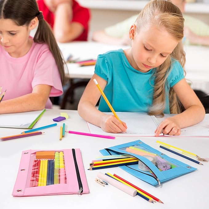 - High-Quality Materials: Made of 600D waterproof and wear-resistant fabric and durable PVC material, the 3 ring pencil pouch for binder is drop-resistant, splash-proof, wear-resistant, and has a longer service life. Equipped with a transparent window design, you can clearly see the items inside without opening the pencil case, making it more convenient to take things