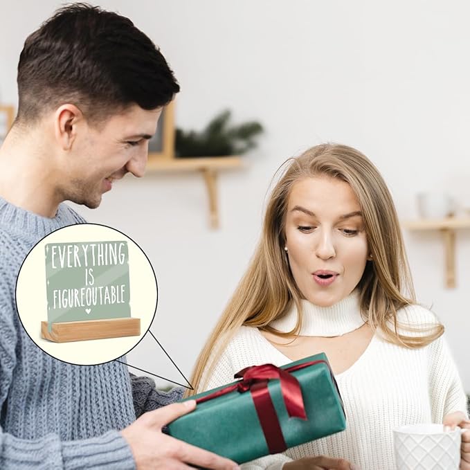 Home Office Desk Decor, Inspirational Farmhouse Acrylic Sign With Wooden Stand Decor for Tabletop Cubicle Shelf Desk Accessories- Everything is Figureoutable Mental Health Sign