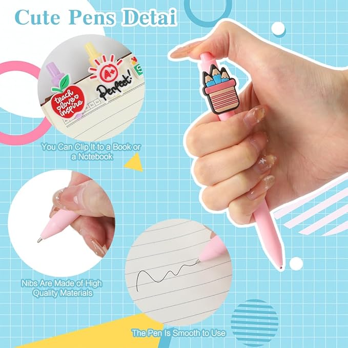 - Wide Range of Applications:The bright colors of cute pens can bring a pleasant mood, also can make teachers easy to complete writing tasks in schools, classroom,offices, homes and other places. It is perfect as daycare teacher appreciation gifts,teacher retirement gifts for women,new teacher gifts,preschool teacher gifts,thank you teacher gifts,end of year teacher gifts,special education teacher gifts.