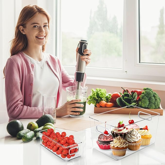 Clear Plastic Storage Bins 8 Pack - Pantry Organizers and Storage, Fridge Organizer for Kitchen, Cabinet, Freezer, Bathroom, Clost, Home Organization