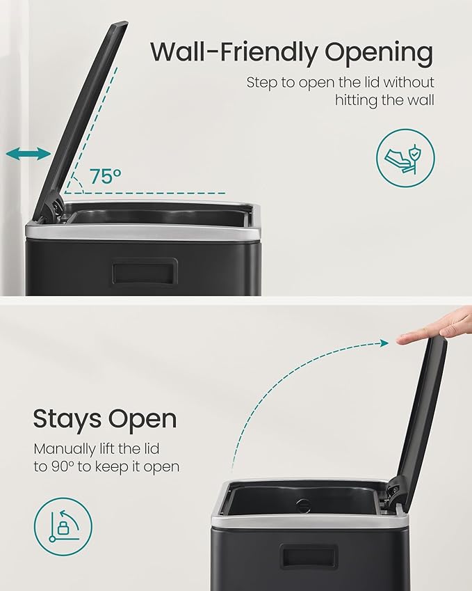 - Easy to Empty: The inner bucket, equipped with 2 side handles, simplifies emptying and cleaning, making the daily upkeep of your garbage can more convenient