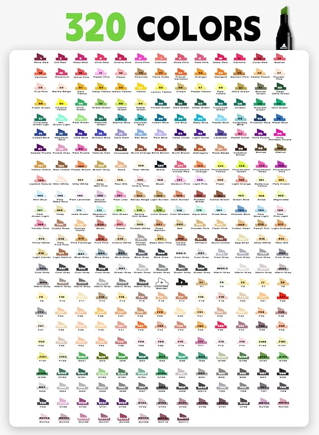 320 Colors Alcohol Markers with Free App, Chisel & Fine Tip Alcohol-Based Marker Set for Adults Kids, Dual Tip Artist Markers for Drawing, Coloring Illustration, Painting and Great Gift Idea