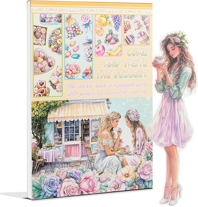 Snycler Taste The Dessert Theme Sticker Scrapbooking Supplies for Junk Journal, 20 Sheets PET Stickers - Vintage Journaling Stickers, Ephemera Sticker Book Pre Cut, Planner, Junk Journal Supplies