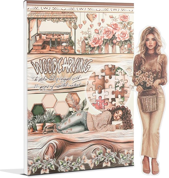 Snycler Woodcarving Theme Sticker Scrapbooking Supplies for Junk Journal, 20 Sheets PET Stickers - Vintage Journaling Stickers, Ephemera Sticker Book Pre Cut, Planner, Junk Journal Supplies