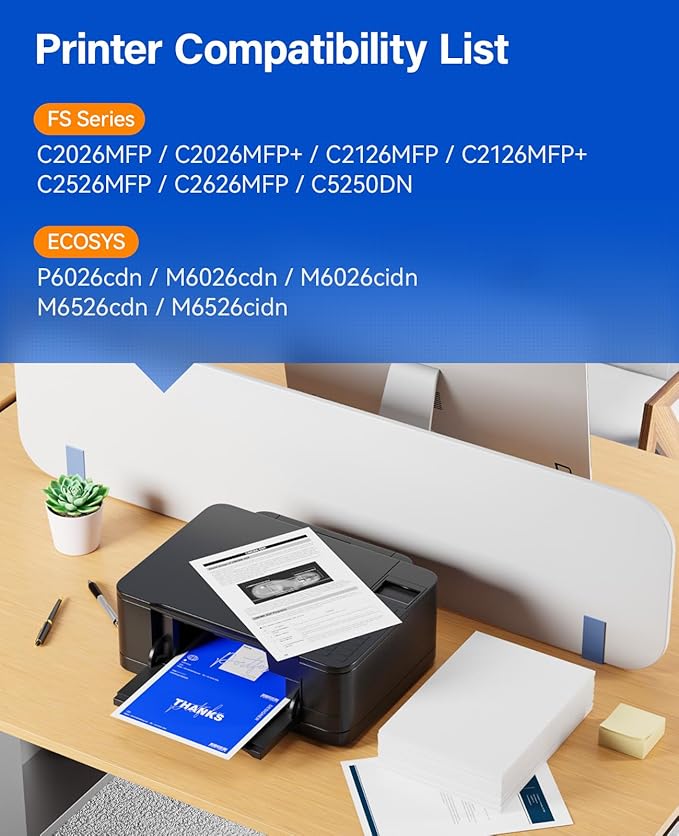 - Compatible Printer: Compatible for Kyocera FS-C2026MFP, C2026MFP+, C2126MFP, C2126MFP+, C2526MFP, C2626MFP, C5250DN, Kyocera ECOSYS P6026cdn, M6026cdn, M6026cidn, M6526cdn, M6526cidn Printer.