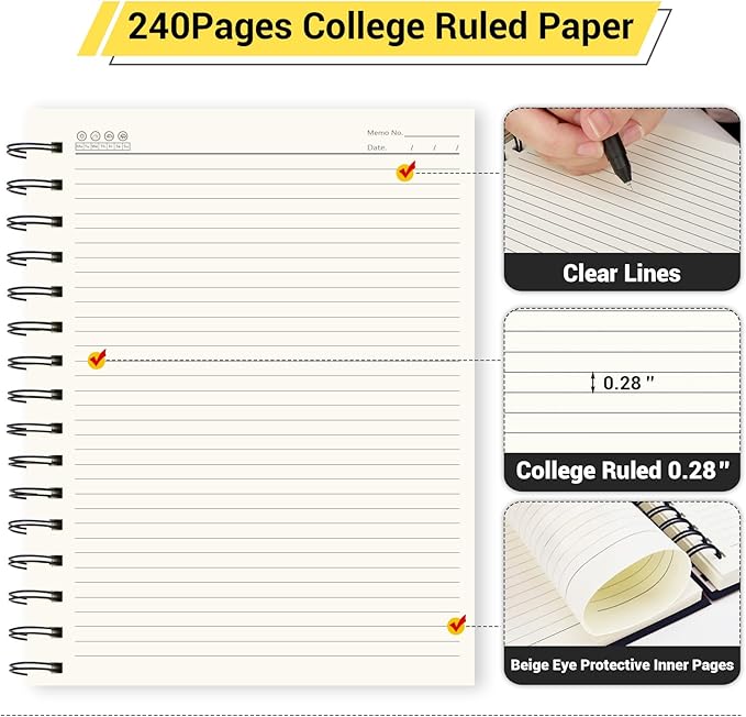 - 【Spiral Design】The notebook is bounded with sturdy double spiral wire, which can not only make notebook lays flat when open, but also facilitate you to tear pages without separate or scattering.