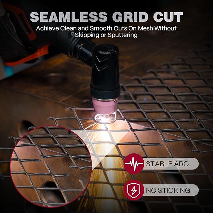 - [GRID CUTTING & RUST REMOVAL] This plasma cutter supports precise grid cutting for detailed shapes and patterns. It also features pilot arc rust removal, effectively cleaning metal surfaces without damaging the base material and reducing prep time. (NOTE: Please switch the machine to the corresponding mode before using these functions.)