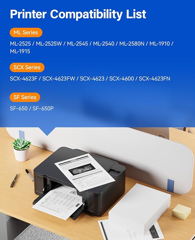 - Compatible Printer: Compatible with Samsung ML-2525, ML-2525W, ML-2545, ML-2540, ML-2580N, ML-1910, ML-1915, SCX-4623F, SCX-4623FW, SCX-4623, SCX-4600, SCX-4623FN, SF-650, SF-650P Series Printers.