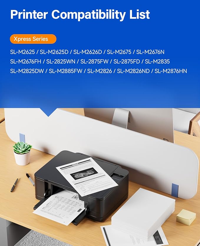 - Compatible Printer: Compatible with Samsung Xpress SL-M2625,SL-M2625D,SL-M2626D,SL-M2675,SL-M2676N,SL-M2676FH,SL-2825WN,SL-2875FW,SL-2875FD,SL-M2835,SL-M2825DW,SL-M2885FW,SL-M2826,SL-M2826ND,SL-M2876HN Series Printer.