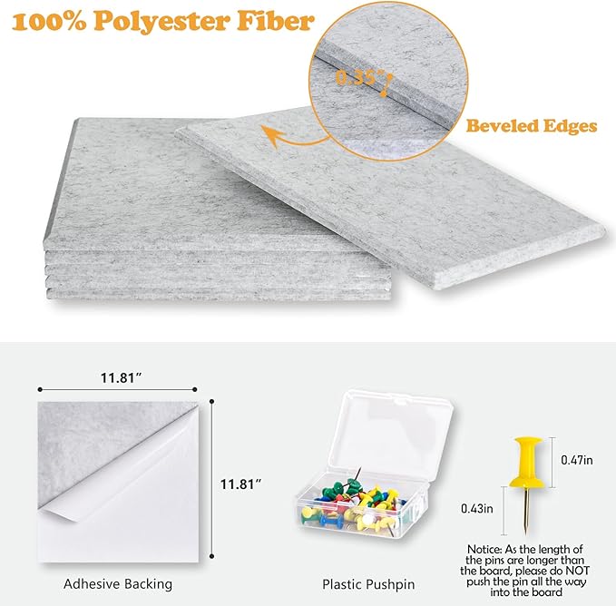 - ADDITIONAL FEATURE - The polyester fiber panels with porous structure help absorb air vibrations in sound waves, reduce sound reflection and echo. Install as a whole wall for higher noise reduction