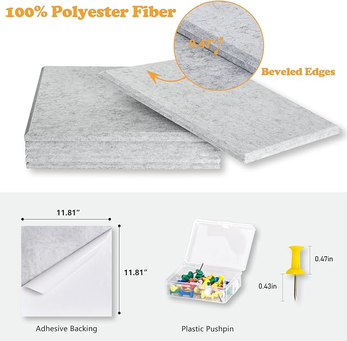 - ADDITIONAL FEATURE - The polyester fiber panels with porous structure help absorb air vibrations in sound waves, reduce sound reflection and echo. Install as a whole wall for higher noise reduction