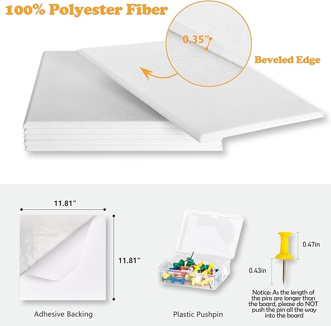 - CUSTOM SIZED BULLETIN BOARD - Comes with 6 packs wall panels measures 11.8" x 11.8", the large pushpin board can be customized to any size you need