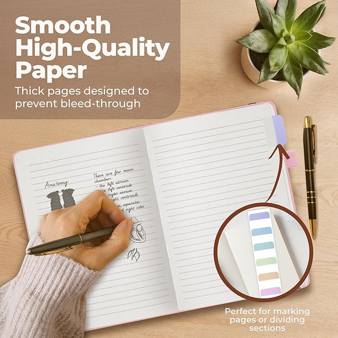 - THICK, SMOOTH, CREAM PAPER – NO BLEED, NO GHOSTING – Featuring 300 pages of high-quality thick paper, our smooth, off-white sheets let your pen glide effortlessly, with zero bleed-through—even with gel or fountain pens. Our college ruled notebook is ideal for daily creative journaling, long note-taking sessions, and meeting reflections.