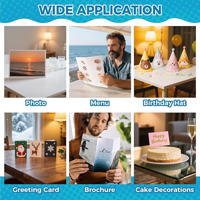 - Wide Application: Our glossy inkjet printer paper is versatile. This inkjet photo paper is not only suitable for printing photos, but also ideal for DIY greeting cards, chip bags, brochures, calendars, flyers, birthday hats, cake decorations and more