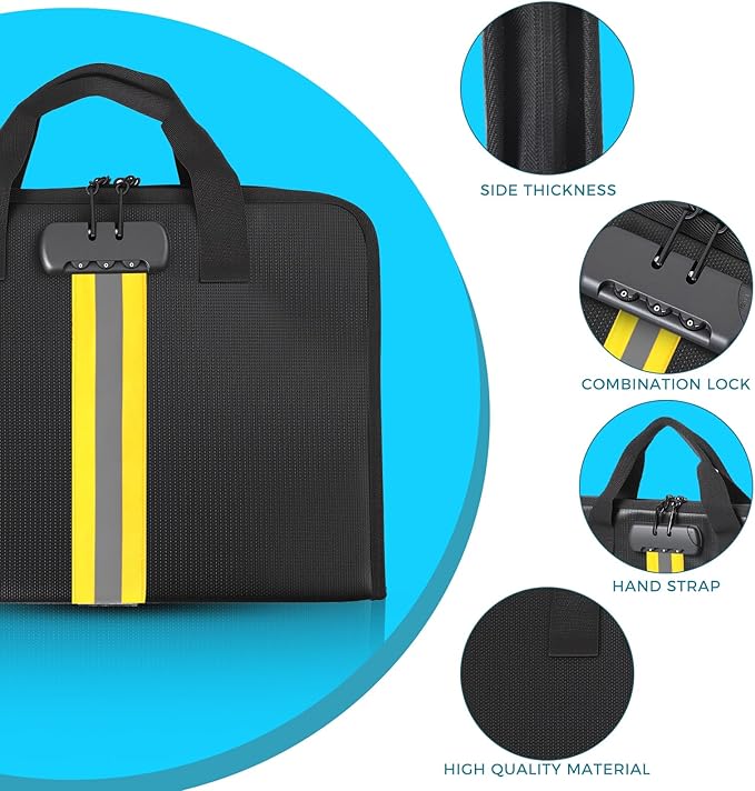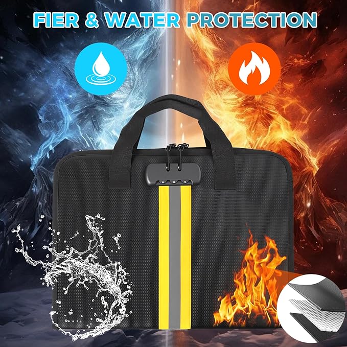 - High-Quality Materials:Fireproof expanding file organizer made of 3-layered silicone-coated fiberglass, withstands extreme temperatures up to 2500β has passed SGS testing(UL94 certified). Protects important documents from fire, flood, and wet weather conditions