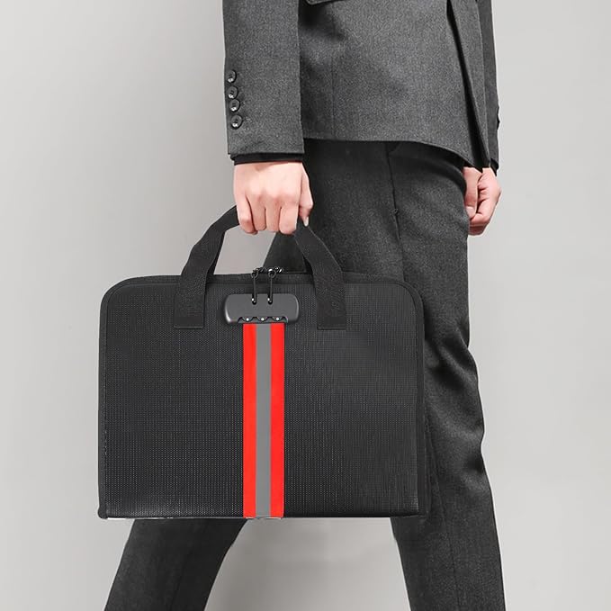 - High-Quality Materials:Fireproof expanding file organizer made of 3-layered silicone-coated fiberglass, withstands extreme temperatures up to 2500β has passed SGS testing(UL94 certified). Protects important documents from fire, flood, and wet weather conditions