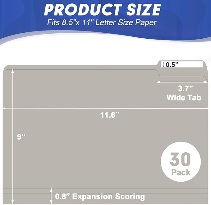 File Folder, HERKKA 30 Pack 1/3 Cut Tab File Folders, File Folders Great for Organizing and Filing, Letter Size, Grey