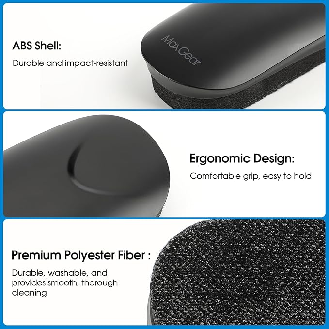 MaxGear Dry Erase Eraser, Magnetic Whiteboard Eraser for Glass Board, Dry Erase Board, Dry Erase Board, Chalkboard Wiper with Built-in Magnet, Teacher Supplies for School, Office, Home, Black, 2 Pack