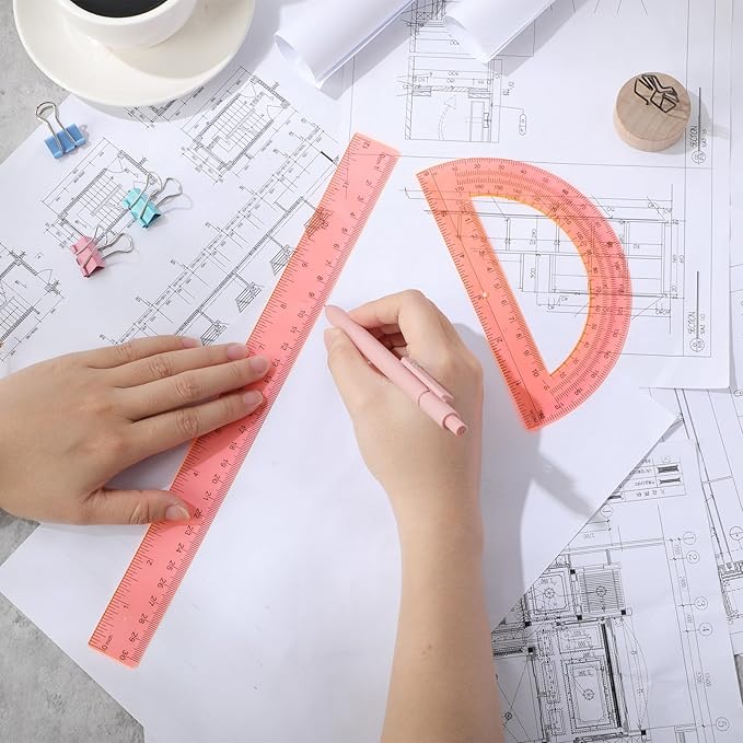 - Proper Size for You to Carry: the length of the standard ruler is about 30.7 x 3 cm/ 12 x 1 inch, the length of the protractor is about 15 cm/ 6 inches, the height is about 8.5 cm/ 3.35 inches; The size is appropriate, easy to carry, and you can put it in your stationery box or bag
