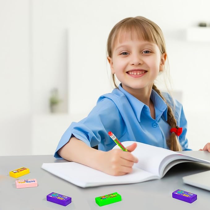 - Perfect for Back-to-School Gifts & Classroom Rewards:Ideal for teacher prize boxes, first day of school treats, goody bag filler gifts,birthday party favors, or positive reinforcement tools. These fun and functional erasers help make learning more engaging and enjoyable