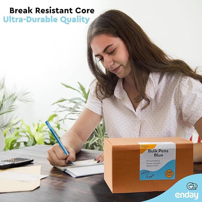 Enday Bulk Ballpoint Pens Blue (240 Pack) Ink pens bulk, Medium Point 1.0mm, office, Smooth Writing Blue ink for School, Home, and Office.