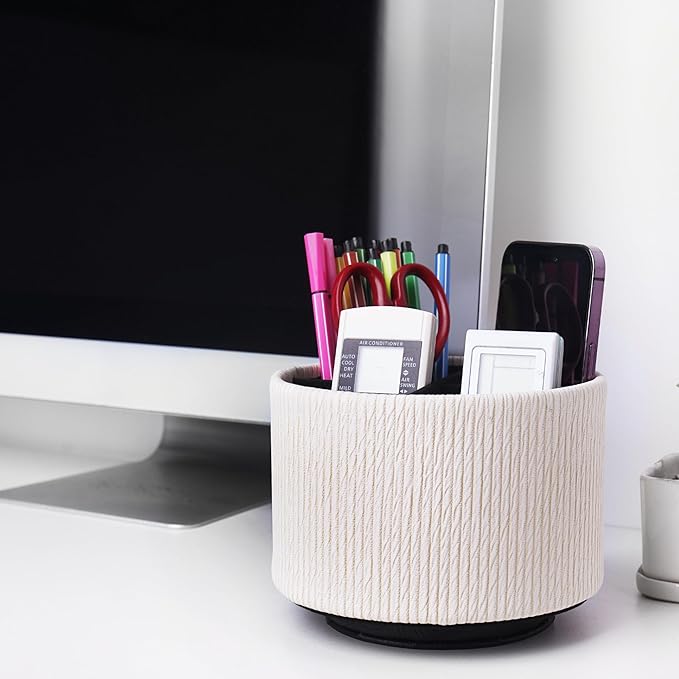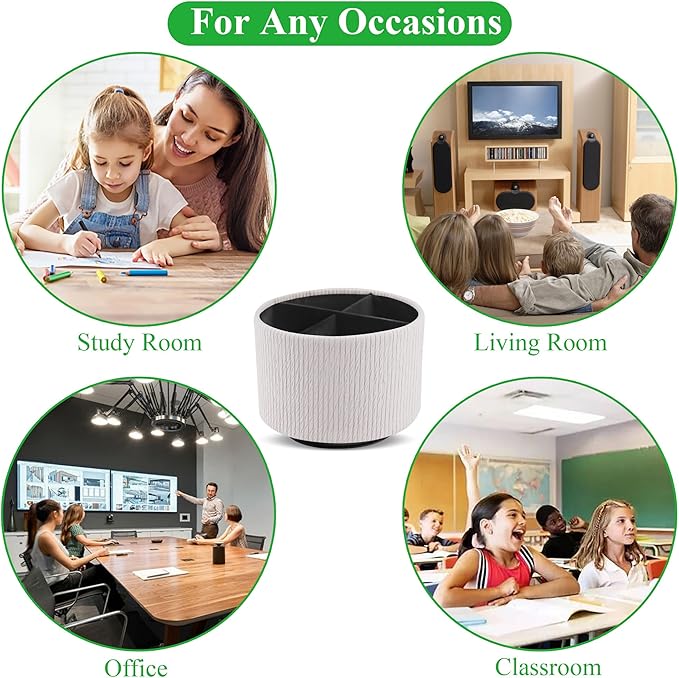 - ✎360° Revolving Design: You can freely rotate the pen holder steadily left and right,unique spinning base design allows easy access to items from any directions.The non-slip pads on the bottom keep it stay in place when rotating.