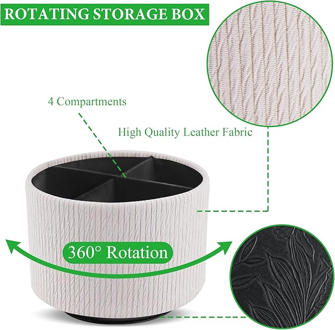 Hennaja Round Leather Art Supply Organizer,Remote Control Holder,360 Degree Spinning,Multi-Functional Pencil Holder,4 Compartments Desktop Stationary Organizer(1-Wood Beige)