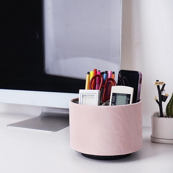 - ✎360° Revolving Design: You can freely rotate the pen holder steadily left and right,unique spinning base design allows easy access to items from any directions.The non-slip pads on the bottom keep it stay in place when rotating.