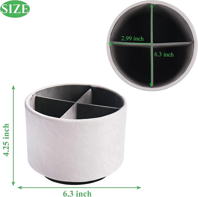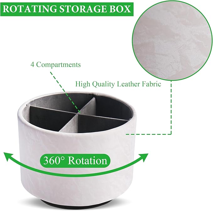 Hennaja Round Leather Art Supply Organizer,Remote Control Holder,360 Degree Spinning,Multi-Functional Pencil Holder,4 Compartments Desktop Stationary Organizer(1-Hill White)