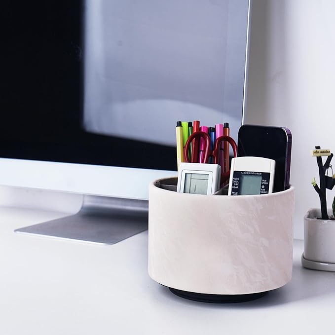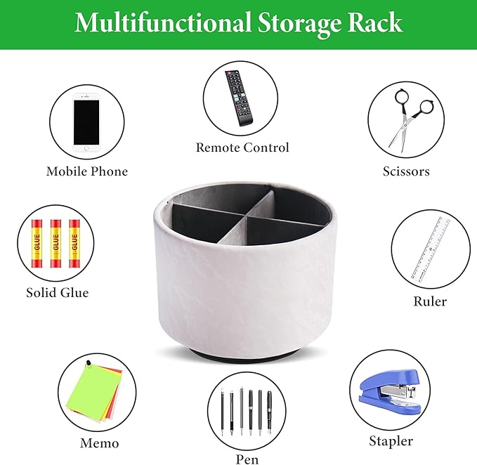 - ✎360° Revolving Design: You can freely rotate the pen holder steadily left and right,unique spinning base design allows easy access to items from any directions.The non-slip pads on the bottom keep it stay in place when rotating.